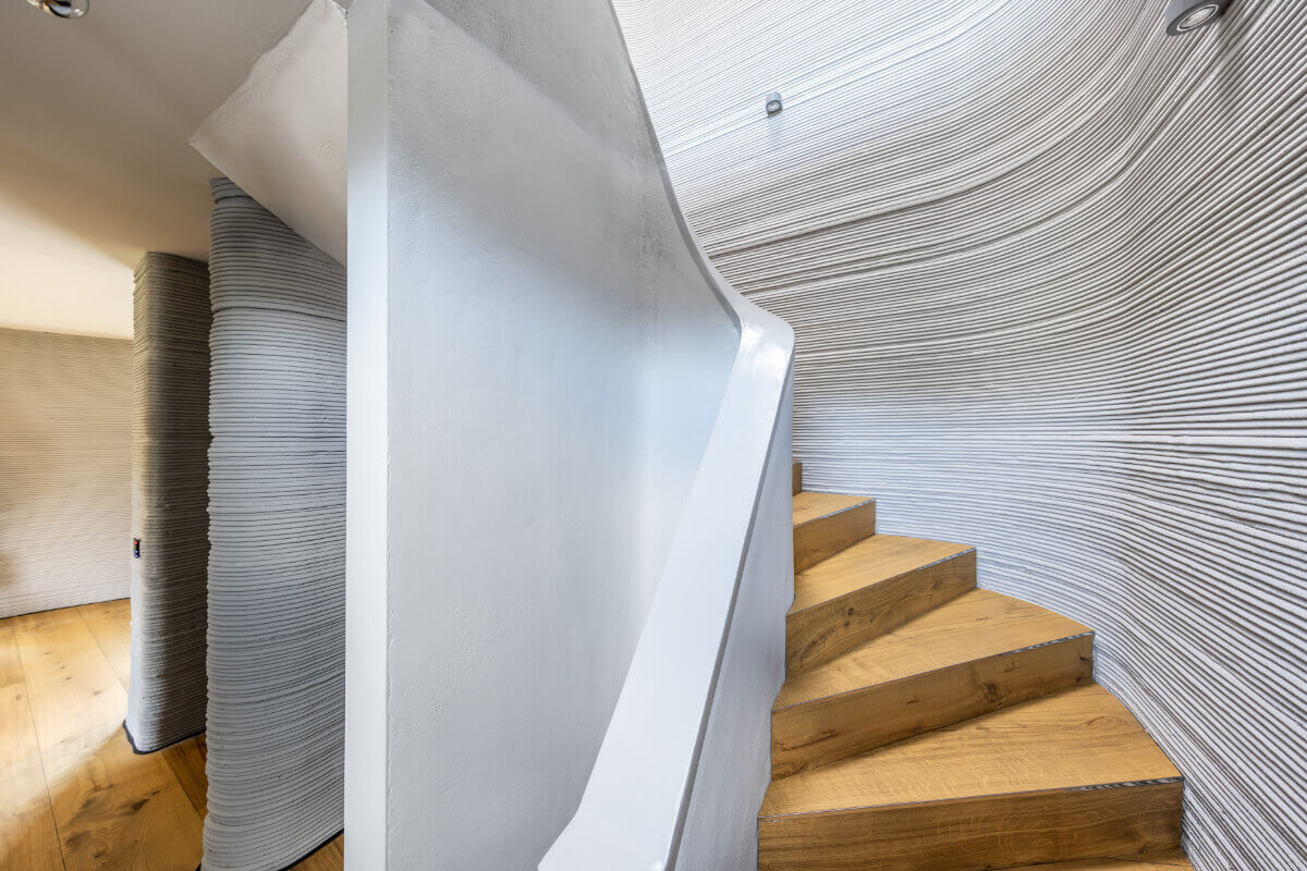 Lightweight lime plaster from akurit ensures an excellent finish inside this 3D house in Beckum.