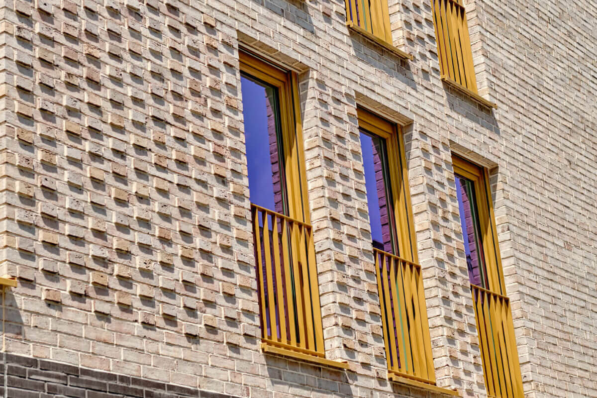Or rather up, e.g. to the Skyline Deck, a huge rooftop terrace with incredible 360° views across Frankfurt’s impressive skyline. This partly refurbished, partly new, top-quality complex with its 162 rented apartments and four business units on Burgstraße has façades that satisfy the highest demands. The architects selected a subtle combination of brick slips and rendered surfaces for the façades. Both general contractor Jöst Bau (Frankfurt) and specialist contractor Dawid Pogwizd (Weiterstadt near Darmstadt) placed their faith in building materials from akurit, the premium brand for render, plaster and insulation systems from Osnabrück-based Sievert SE. Render, plaster and insulation systems from akurit were used on the façades, in the interior and in the basement garage. In total, akurit supplied more than 6400 m² of wall and floor insulation in the form of its thermal insulation composite systems Nordic MWP R and Basis EPS M.